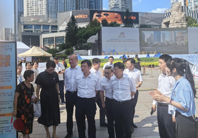 江北、沙坪坝、奉节等区县、西南大学、四川美术学院、重庆文理学院、重庆航天职业技术学院、国家语言文字推广基地(科大讯飞)在现场进行了语言文字主题成果展,为市民、游客带来普通话水平模拟测试、无人机推普应用展示、诗词接龙闯关等沉浸式体验,现场市民游客纷纷打卡参与。