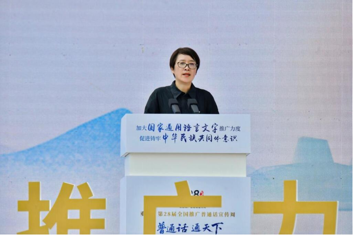 市委教育工委专职副书记屈锐表示,要充分发挥教育系统的阵地作用、党政机关的带动作用、新闻媒体的示范作用、服务行业的窗口作用,为推动建设“创新、宜居、美丽、韧性、文明、智慧”的现代化新重庆提供更加优质的用语环境,以规范之语厚植人民幸福之本,以推普之效夯实现代化新重庆建设之基。